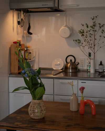 This flower vase is made by carefully hand-weaving rattan into a hand-blown glass flower vase from Vietnam. It is an item that gives off the warmth of handmade items while also showing the skill of the artisan. You can enjoy the vase alone regardless of the season or flowers. Source: https://online.actus-interior.com/