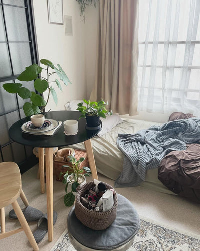 This is a minimalist cafe table that you may not have seen before. It is a fairly compact cafe table with a diameter of 60cm. It has slender natural wooden legs and a stylish design with a glossy painted top. The size and design are very minimal, but the appeal is that it is easy to incorporate into a room for a single person. source: