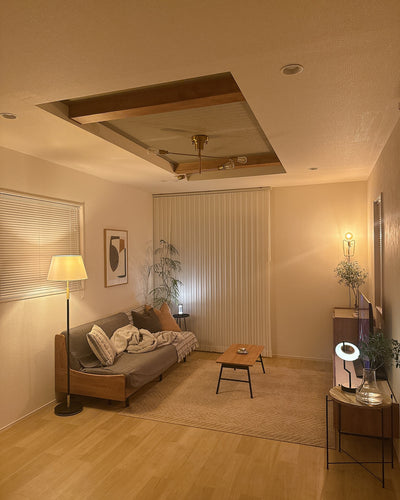 This is a simple ceiling light with simple coloring and just a light bulb. The two lights are three-dimensional, and the arms can be freely moved to create any shape you like. Also, by giving the light bulb a unique feature, it can become even more stylish and cute. Source: https://beaubelle.shop/