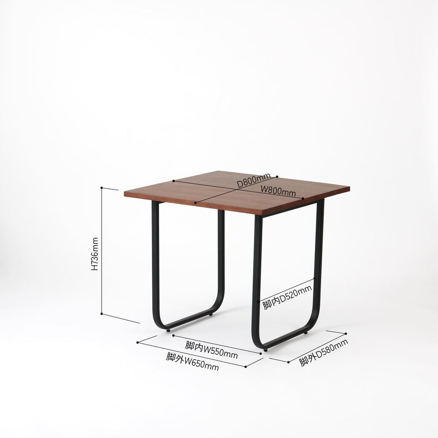 KUUM Table W800×D800 アッシュ無垢材ブラウン 鉄脚オーバル