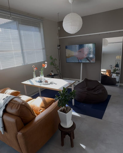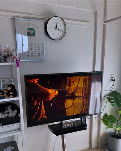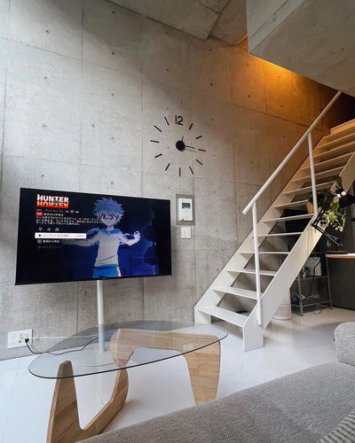 This TV stand can be moved freely on casters to wherever you want to use it or watch it. It can be moved and rotated freely without applying force, so you can set it anywhere in your room. The height can be adjusted to 5 levels for a comfortable viewing height, and it has passed earthquake resistance tests up to magnitude 7. Source: https://equals.tokyo/