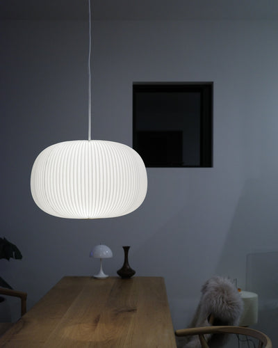 This unique pleated pendant light was designed by designer Takagi Homsved, who was fascinated by the pleats on the underside of a mushroom cap and intrigued by their delicate beauty. The technique of folding countless pleats from a single resin sheet and curving them with heat without creating any sharp corners is considered extremely difficult to master. The flowing, organic form without any sharp corners creates a simple, beautiful, and airy impression. The pendant is available in four different shapes, allowing you to enjoy hanging multiple lights at the same time. The smooth, rounded form, reminiscent of Japanese lanterns, blends seamlessly with traditional Japanese rooms. Choose your color for the upper and lower metal sections. Le Klint's signature warm light and gentle shadows lie in the beautiful, handmade form, woven from a single sheet. Shades, unchanged since the company's founding, are still meticulously crafted by skilled artisans in a workshop in Odense, Denmark's third-largest city. It is said that it takes three years to master this basic technique, and more than ten years to master it. The pleated shade is made of flame-retardant PE resin, which is resistant to UV rays and heat and has high transparency. It's also static-resistant, making it easy to clean. Daily cleaning requires only a brush to maintain its beauty. Le Klint products come with Philips Hue bulbs. Philips Hue bulbs can be turned on and off, brightness adjusted, and timers/schedules set using a smartphone or tablet. Source: https://jias-net.jp/