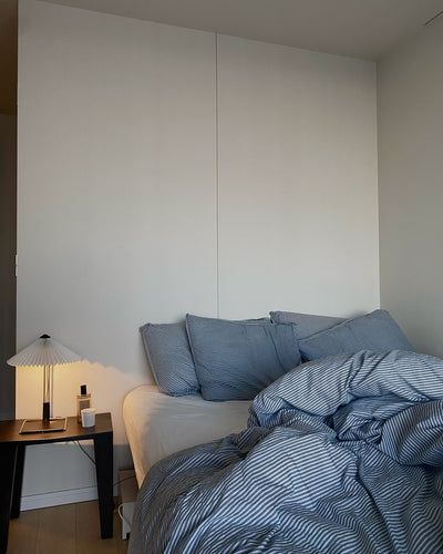 A table lamp with a contemporary yet romantic design. Its delicate yet robust construction combines a frame made of bent steel wire with a sleek brass finish, matte black hardware and a pleated cotton shade in vibrant colors to create an attractive design. The built-in LED and dimmable function allow you to adjust the brightness to suit your needs. Press the switch once for maximum brightness, twice for medium brightness, three times for minimum brightness and four times to turn off the light. It can be used in a variety of situations, such as as a reading light in a study or bedroom, or as indirect lighting in a living room. Available in two sizes: small and large. Source: https://item.rakuten.co.jp/