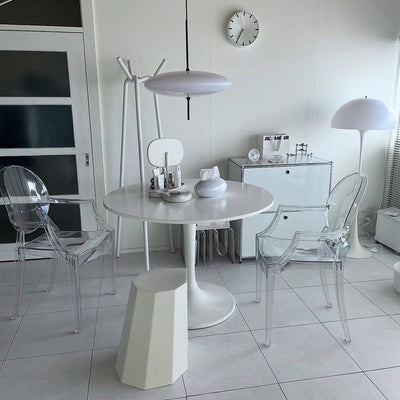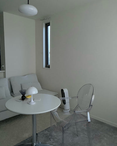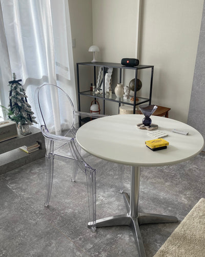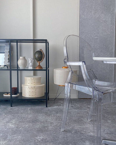 This armchair is a unique reproduction of a Louis XV-style chair crafted from polycarbonate resin. Its contemporary interpretation of Baroque style exudes a fresh and distinctive charm. It's a best-selling model that could be considered an icon of Kartell. Louis Ghost is a world-renowned example of one-piece injection molding using polycarbonate resin, and despite its translucent, ephemeral appearance, it boasts solid durability. It's impact- and scratch-resistant, and can be used outdoors. It can be stacked up to six chairs. Source: https://www.rakuten.co.jp/