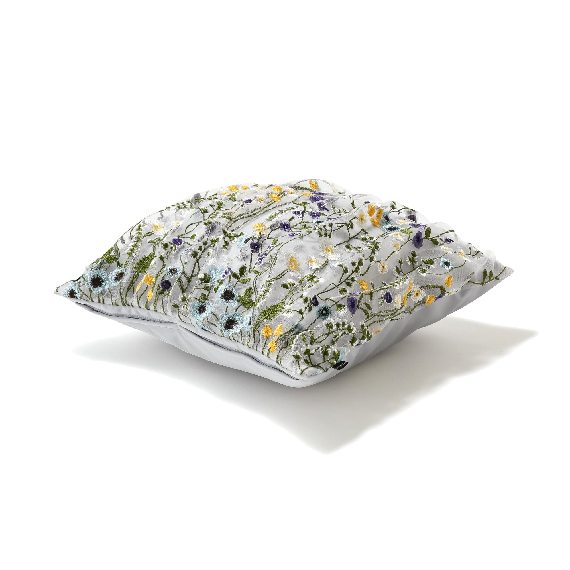 This cushion cover features a botanical motif embroidered all over the tulle fabric. The pale blue-gray fabric layer that can be seen through the mesh of the tulle fabric is a sophisticated design, and the generous gathers give it a gorgeous finish. ▼Cushion cover filling (sold separately) is hereCushion nude list▼Other cushion covers are hereCushion cover listSizeW450×D450mmMaterialBody 100% polyester, Tulle part 100% nylon, Embroidery 100% polyesterColorMULTIProduct number1102010030363The shipping fee is 550 yen (tax included) nationwide. If the total amount of miscellaneous goods is 5,000 yen (tax included) or more, shipping will be free. *Handling fees, wrapping fees, and additional service fees are not included. *Due to the busy shipping and delivery seasons of the new life period and the year-end and New Year holidays, we may not be able to deliver on the desired date and time even if you specify a date and time. ●Washing: Not possible●Dry cleaning: Not possible■Tumble drying: Not possible■Ironing: Not possible■Due to the nature of the product, there may be some variation in size, color, and pattern. ■Due to the nature of the material, it may discolor if exposed to direct sunlight or light for a long time. ■The color may fade or transfer to other items. Please be careful of friction, especially when wet. ■Friction caused by use may cause fluffing, shedding, and pilling. ■The fabric on the front side is thin and delicate, so please be careful not to pull it with strong force when wearing it. ■Please be careful not to pull or snag the embroidered parts. ■Due to the nature of the manufacturing process, the ends of the embroidery thread may stick out, but please do not pull them. ■Do not wash or dry clean as the appearance may change. ■If it gets dirty, wipe it lightly with a tightly wrung cloth. Source: https://francfranc.com/