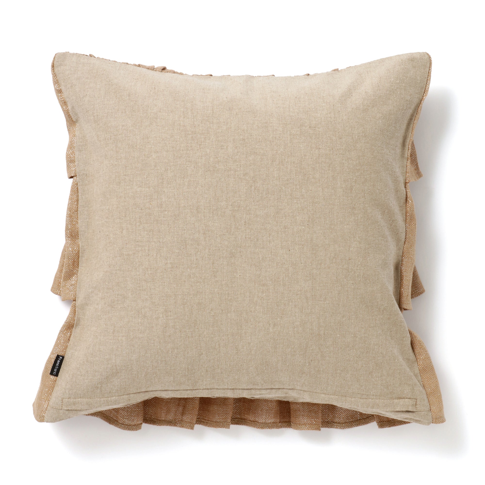 This cushion cover is made of thick linen fabric with lamé thread woven into it, with three ruffles. ▼Click here for cushion cover filling (sold separately)Cushion nude listSizeW450×D450mmMaterialBody: 100% cotton, Ruffles: 98% linen, 2% polyester (slit thread used)Weight0.2 kgColorNTProduct number1102010049570550 yen (tax included) nationwide. If the total amount of miscellaneous goods is 5,000 yen (tax included) or more, shipping will be free. *Does not include handling fees, wrapping fees, or additional service fees. *Due to the busy shipping and delivery periods during the new life period and the year-end and New Year holidays, we may not be able to deliver on the desired date and time even if you specify a date and time. ■Washing: Not possible■Dry cleaning: Not possible■Tumble drying: Not possible■Ironing: Not possible■Water repellent treatment: Not possible■Due to the characteristics of the product, it cannot be washed or dry cleaned. If it gets dirty, wipe it lightly with a tightly wrung cloth. ■Due to the nature of the material, friction and friction can cause pilling, shedding, and lint. ■Due to the nature of linen material, uneven coloring and slubby spots may be seen. ■The texture and feel of the material will change with use and friction. ■Due to the nature of the material, there may be some areas where threads of different colors are mixed in, but this is not a defect. ■Country of Origin: India Source: https://francfranc.com/