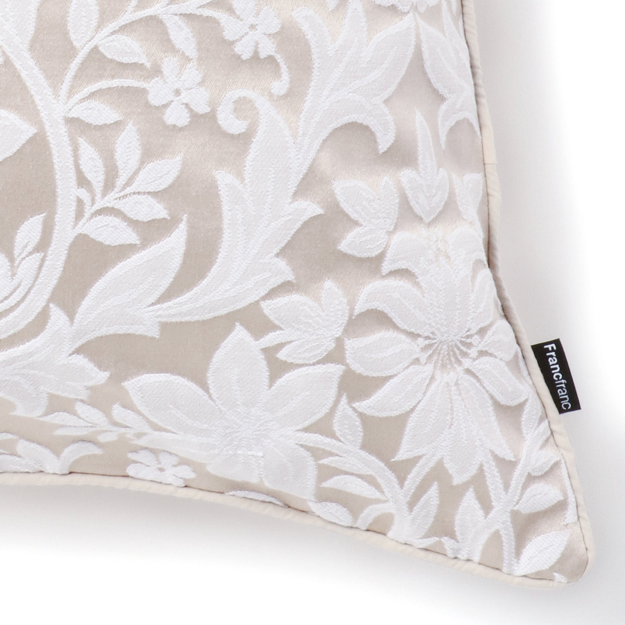 This cushion cover features an ornament motif in a jacquard weave with a textured feel. Recommended for those who prefer an elegant atmosphere. ▼Cushion cover filling (sold separately) is here Cushion nude list Size W450 x D450 mm Material Front: 70% cotton, 30% polyester, Back: 100% cotton Weight 0.11 kg Color BE Product number 1102010050477 Nationwide flat rate of 550 yen (tax included). If the total amount of miscellaneous goods is 5,000 yen (tax included) or more, shipping will be free. *Handling fees, wrapping fees, and additional service fees are not included. *During the new life period and the year-end and New Year holidays, shipping and delivery are busy periods, so we may not be able to deliver on the desired date and time even if you specify a date and time. ■Washing machine: Not possible ■Drying: Possible ■Tumble dryer: Not possible ■Ironing: Possible ■Water repellent treatment: Not available ■Washing with water may cause shrinkage, discoloration, or changes in appearance, so please dry clean using a net when cleaning. ■Please use a pressing cloth when ironing. ■Country of origin: China Source: https://francfranc.com/