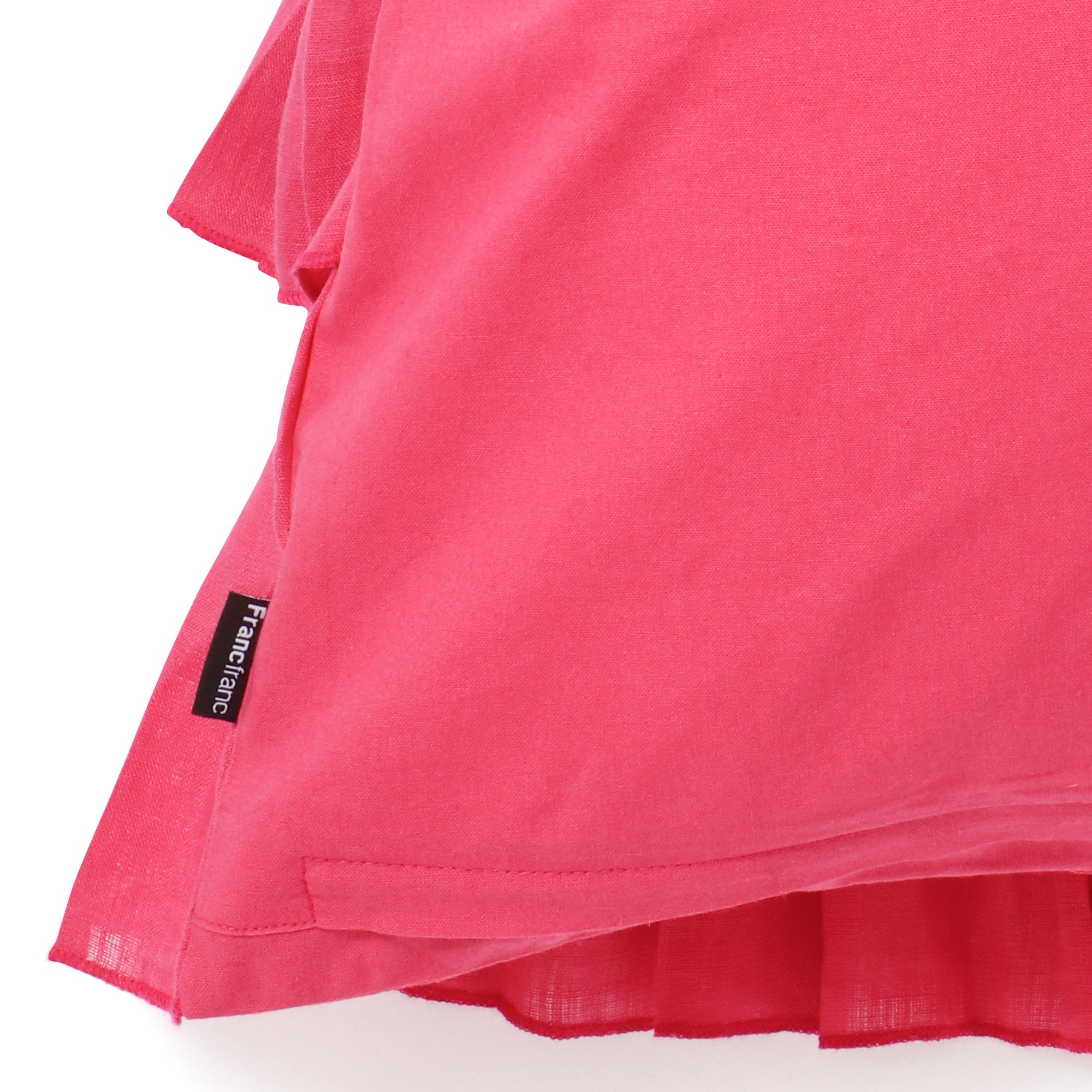This cushion cover is made of firm linen fabric with three tiers of frills. The vibrant colors will instantly brighten up your summer outfit. ▼Cushion cover filling (sold separately) is here Cushion nude list Size W450×D450×H5mm Material Body: 100% cotton, frills: 100% linen, mellow yarn: 100% polyester Weight 0.2 kg Color PK Product number 1102010050675 Nationwide flat rate of 550 yen (tax included). If the total amount of miscellaneous goods is 5,000 yen (tax included) or more, shipping will be free. *Does not include handling fees, wrapping fees, or additional service fees. *During the new life period and the year-end and New Year holidays, shipping and delivery are busy periods, so we may not be able to deliver on the desired date and time even if you specify a date and time. ■Washing machine: Not allowed ■Dry cleaning: Not allowed ■Tumble drying: Not allowed ■Ironing: Not allowed ■Do not wash or dry clean as washing may cause color fading or changes in appearance. ■If it gets dirty, wipe it off lightly with a tightly wrung cloth. ■Due to the nature of the material, fluffing, shedding, and pilling may occur due to use and friction. ■Due to the nature of natural materials, uneven coloring and slubs may be seen. In addition, the texture and feel of the material will change due to use and friction. ■Country of origin: India Source: https://francfranc.com/