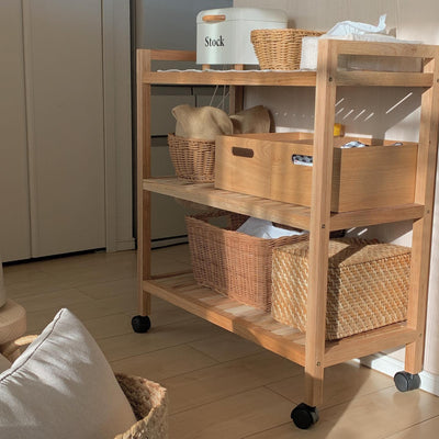 This natural wood cart can be used in a variety of situations to suit your lifestyle. Its simple design blends in well with any room, so you can use it in the living room, dining room, bathroom, or anywhere else to suit your lifestyle. Not only is it easy to move, but it also has ample capacity to use as a shelf. Source: https://francfranc.com/
