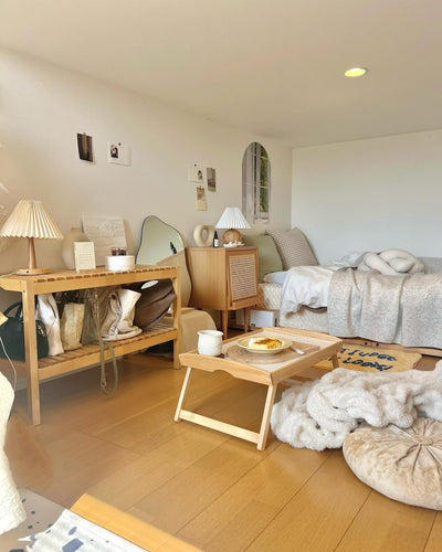 This wooden shelf has the warmth of natural wood. Its simple design blends easily into any room and can be used in a wide range of settings, including the living room, dining room, and bathroom. Source: https://francfranc.com/