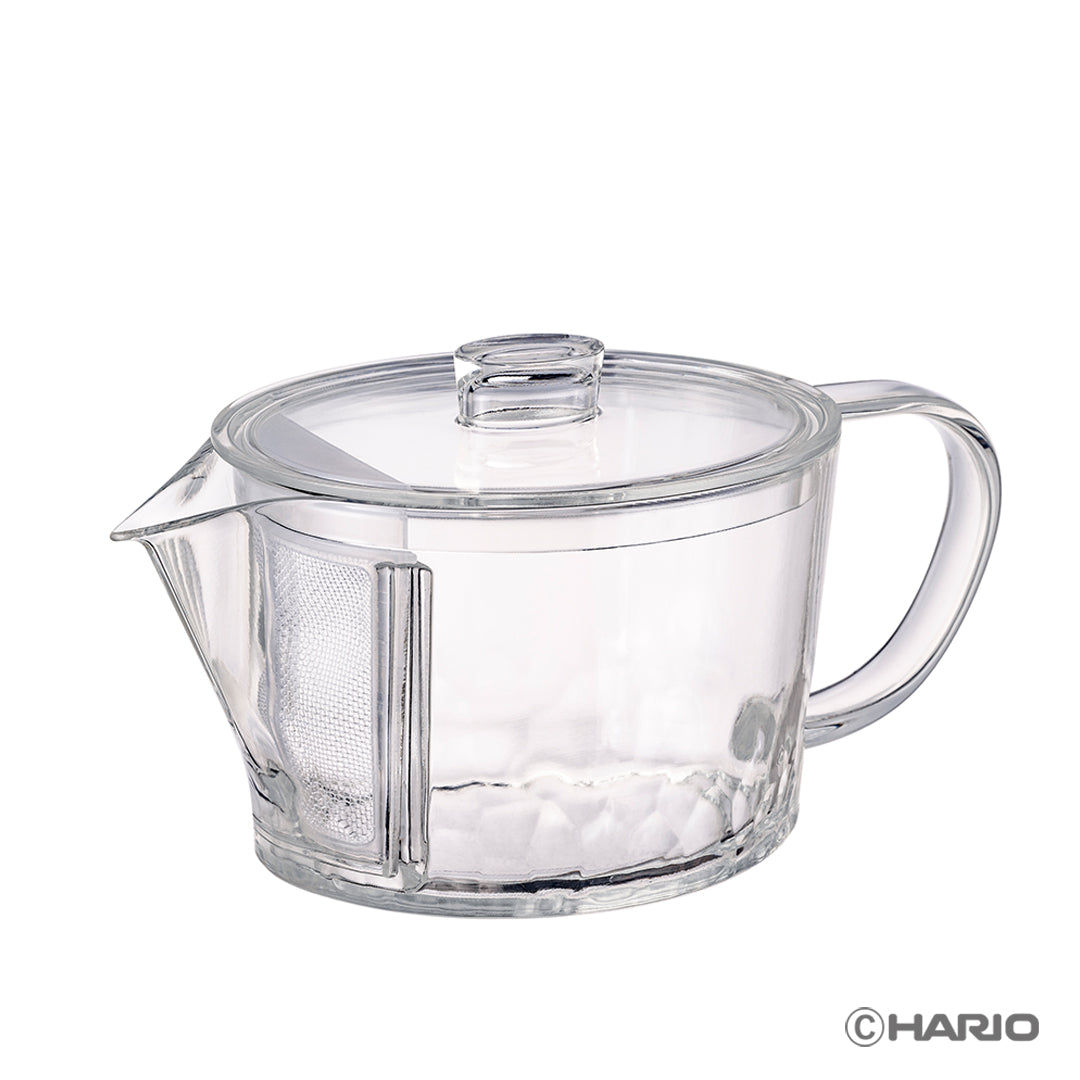 A glass-like transparent teapot made of Tritan that is light and shatter-resistant. The tea leaves are placed directly into the teapot, allowing them to open up and bring out the full flavor of the tea. Comes with a removable filter. The oval shape allows for neat storage. The water drains well and can be poured smoothly to the very last drop. Made of a material that does not easily absorb odors. The bottom of the teapot has a crystal pattern that resembles crystal. Source: https://shop.hariocorp.co.jp/