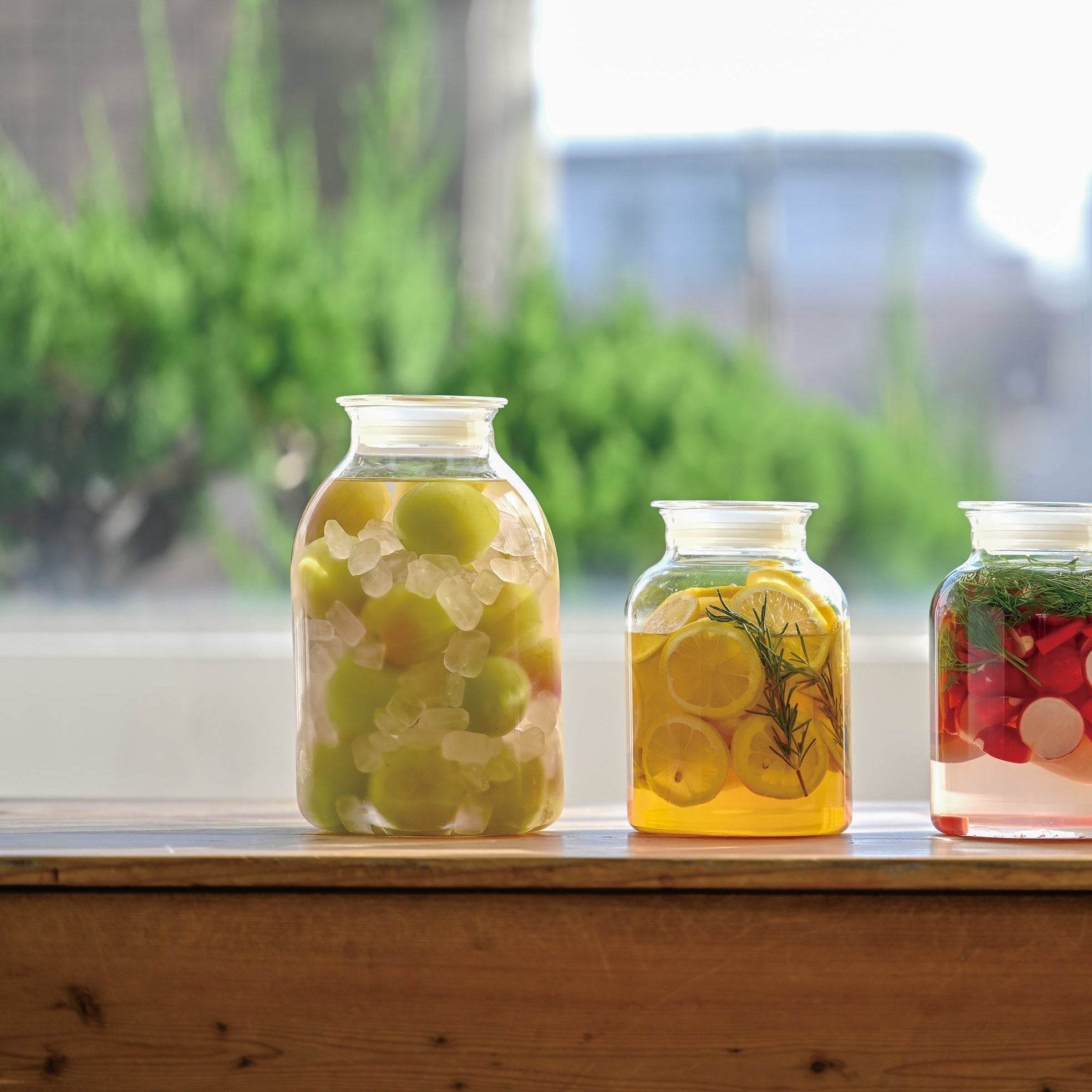 "Life with Glass" is a series that values seasonal handicrafts and adds color to your life with a little extra effort. It is made of heat-resistant glass, and its design combines transparent, simple beauty with functionality. It has a large practical capacity of 2 liters, so it can be used as a container for various pickles. The entire container is made of heat-resistant glass except for the packing, so you can check the contents from the outside. It can be used with boiling water. Source: https://shop.hariocorp.co.jp/