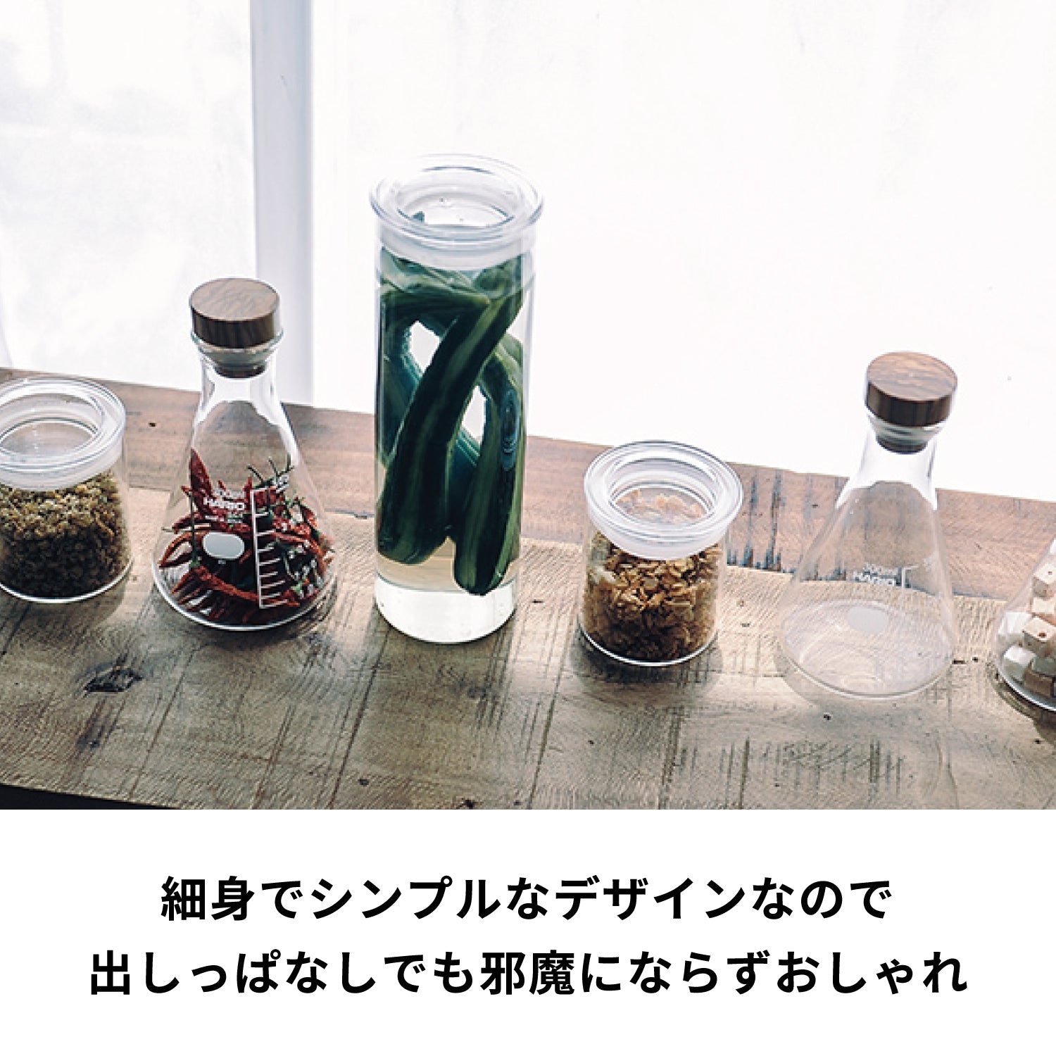The slim-shaped Skinny Canister allows for neat storage. It is all clear, giving it a clean look, and can be used for a variety of purposes, from dry foods to pickled vegetables. *This product will be shipped wrapped in packaging materials. Please note that individual boxes are not included. Source: https://shop.hariocorp.co.jp/