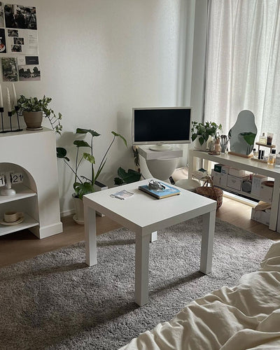 This rug is made of thick, loosely twisted pile and feels comfortable against the skin. The combination of calm colors and a moderate sheen creates harmony in the room. The pile is thick and the seams are not noticeable, so if you have a large room, you can use multiple rugs together. Source: https://www.ikea.com