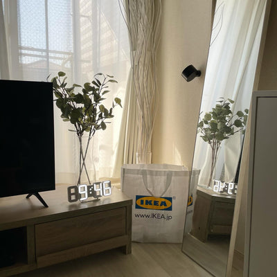 A free-standing mirror that can be moved as needed. A free-standing full-length mirror that won't leave any marks on the wall, and a timeless style that goes well with most interiors. Source: https://www.ikea.com