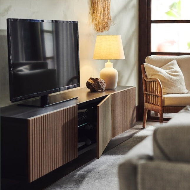 This table lamp has a sturdy ceramic base, a brass-coloured lampholder and a woven fabric lampshade, all in a classic shape that makes it suitable for most interiors and any room in your home. Source: https://www.ikea.com/jp/ja/