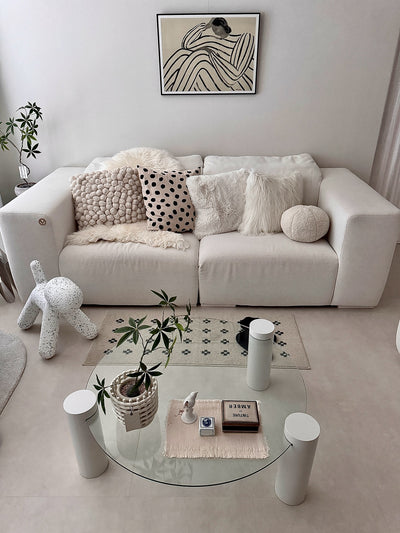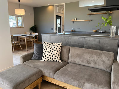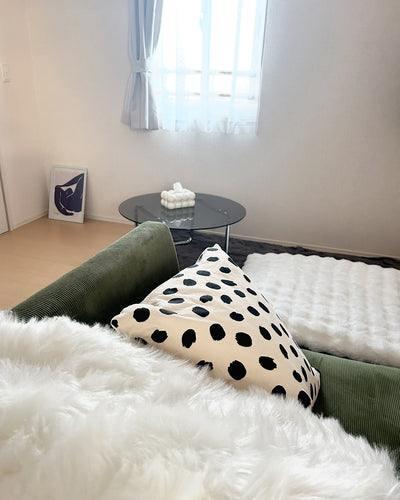 The uneven polka dot pattern adds a lively touch to this cushion cover. The playful black and off-white pattern was created by London-based designer Hannah Wilcox and will coordinate easily with any sofa, bed, bench or armchair. Source: https://www.ikea.com/jp/ja/