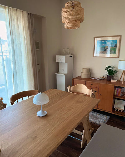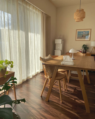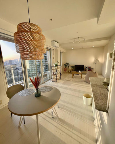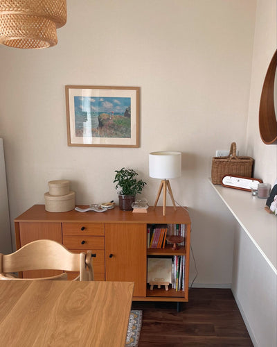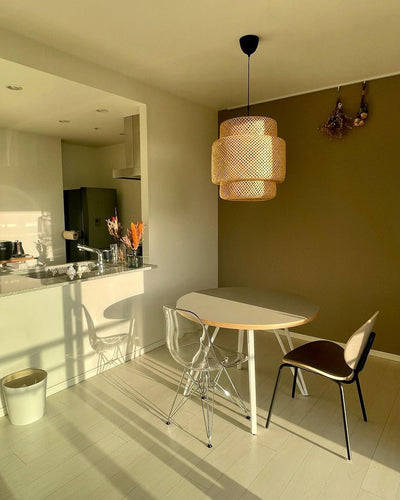 This bamboo lattice lampshade uses woven material to create a warm, comfortable light. It creates a pattern of light in the room. Because it is handmade, each one is slightly different in finish. Source: https://www.ikea.com