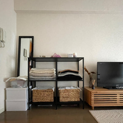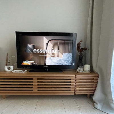 A stylish TV stand with horizontal lattices. The louver-like design gives it a modern feel. It can accommodate a 40-inch TV, making it ideal for single-person living. Source: https://store.isseiki.co.jp/