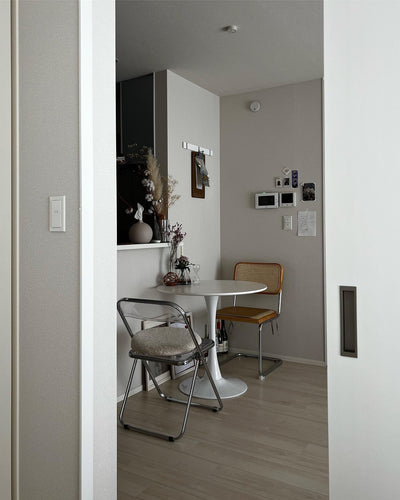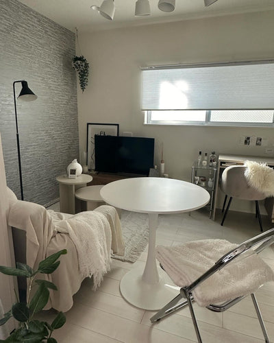 This round table features an elegant and soft form. The carefully crafted smooth feel and high strength frame are easy to assemble. The bottom is made of scratch-resistant resin, which reduces noise when moving and protects the floor from scratches. Source: https://kagu350.com/