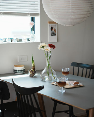 This jug has a structure that allows you to pour while holding ice or lemons in place, without having to open and close it every time you pour. Its simple design makes it easy to use by pouring milk or juice even with the lid removed. The parts can be disassembled, making it easy to wash thoroughly and hygienic. Source: https://online.actus-interior.com/