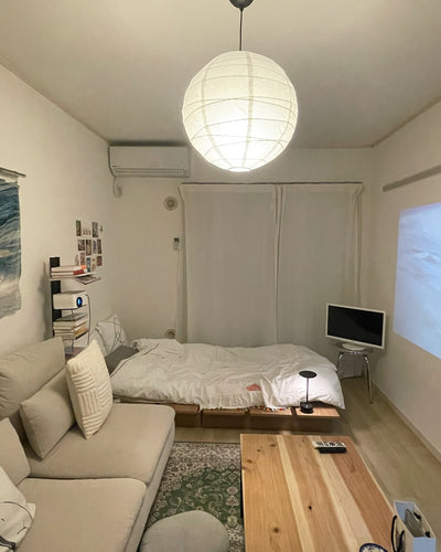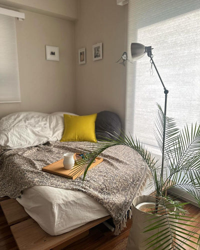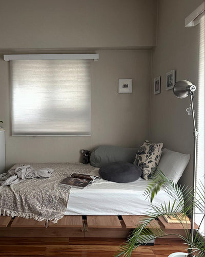 This bed frame has a warm Scandinavian feel. The gentle wood grain will give your room a relaxing, natural feel. Source: https://www.low-ya.com