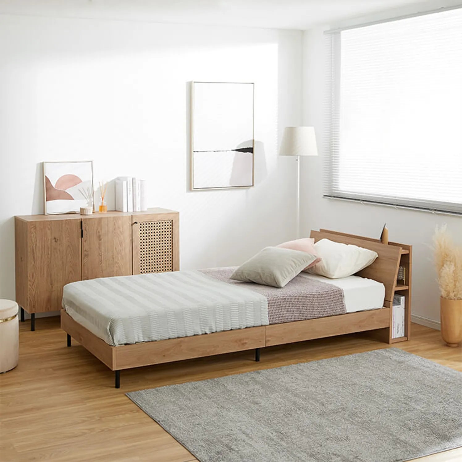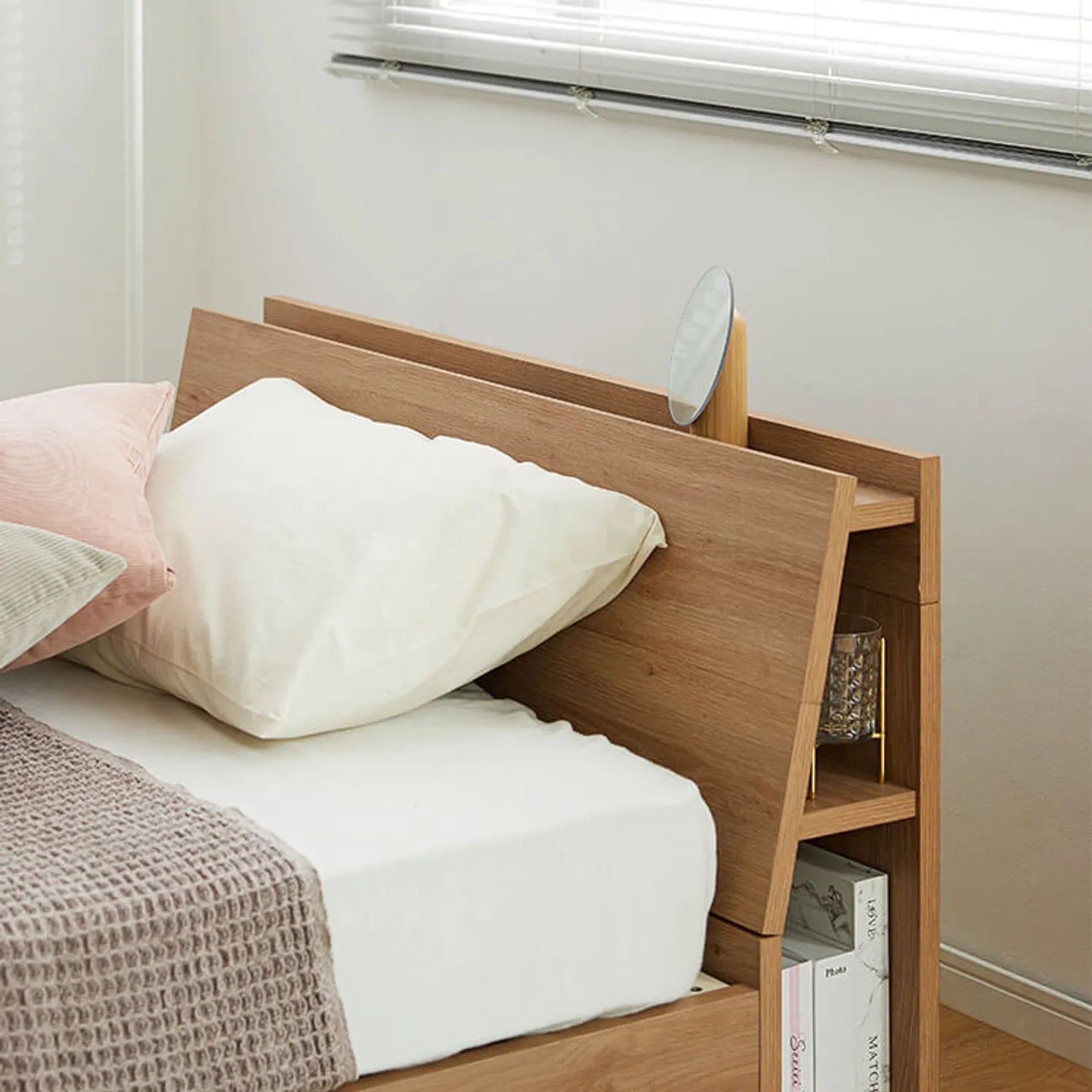 This single bed is designed to be as simple as possible, with space at the base to eliminate the oppressive feeling that is typical of storage beds. The low style creates an open feeling in the bedroom, and the headboard is intentionally angled, giving it a design that stands out from the rest. Source: https://www.low-ya.com