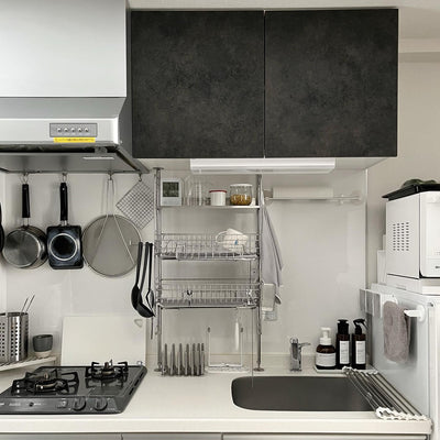 This slim dish drainer rack can effectively utilize the dead space around the sink. With just one of these racks, washing dishes every day becomes easier. Recommended for people living alone who don't have the space to put a dish drainer. Source: https://www.low-ya.com
