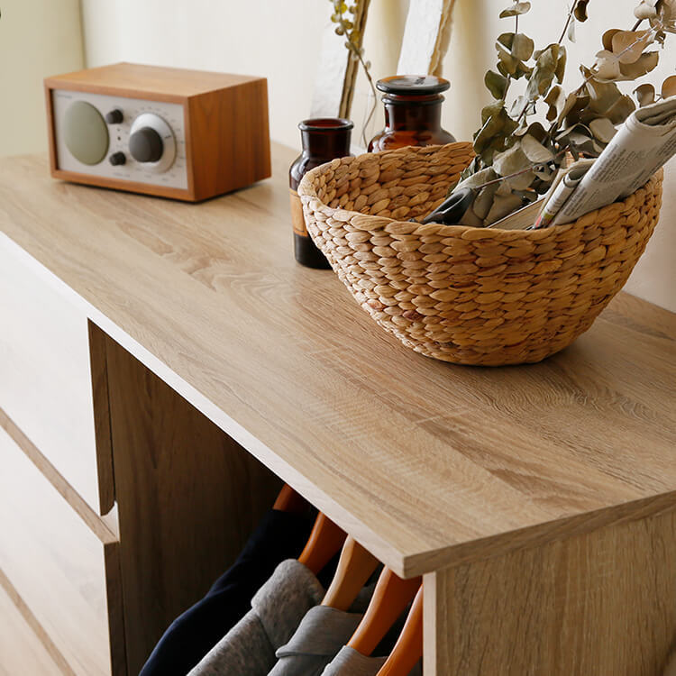 Hanger rack, storage, drawer, with side hooks, wood grain finish [width 120]