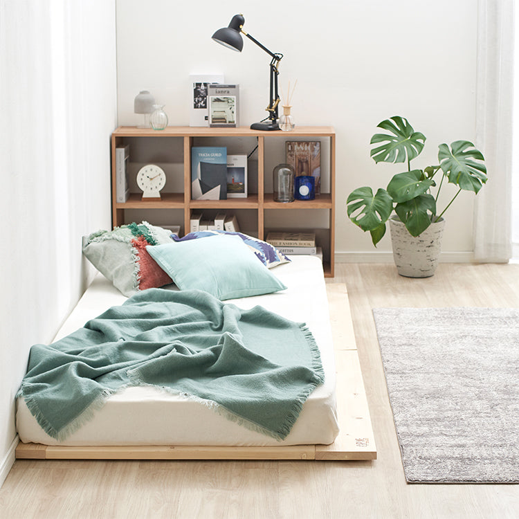 Super low style helps to create a natural and spacious room. The bed frame made of natural solid wood creates a relaxing and open mood. For Japanese people who have been living on tatami mats for a long time, "low style" = "living on the floor" is familiar and calming. We added the good points of overseas bed styles to it. The mattress can be placed like a futon on tatami mats, so it doesn't feel oppressive, and it's perfect for one-room apartments and rooms with limited space! Compared to the height of a general bed frame, this product allows for a wider space to the ceiling, making the room feel larger and giving a clean impression! Source: https://www.low-ya.com