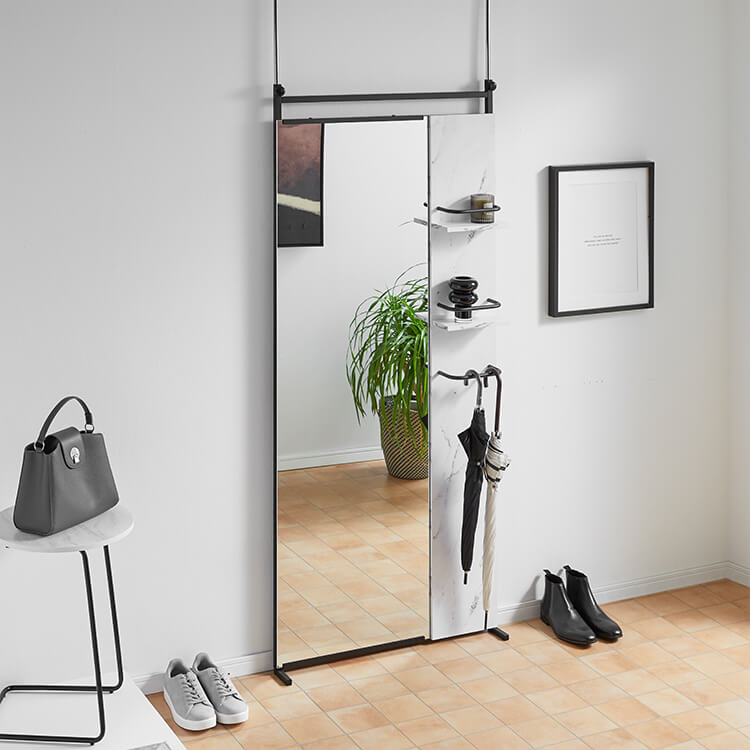 A mirror with storage that can make good use of limited space. As long as there is a ceiling and a wall, it can be installed anywhere. A full-length mirror with added storage space. This item saves space and provides daily fashion and convenient storage. If you install it in the entrance area, you can quickly check your appearance before going out. This one unit can serve as both a mirror and a storage unit, making it perfect for people living alone or in a one-room apartment. Source: https://www.low-ya.com