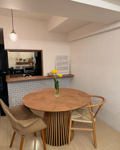 With a nice dining set, your everyday meals and tea time will be a much more fulfilling experience. This dining set's elegant design and just the right size will bring a subtle happiness to your daily life. This dining set combines the popular items of a refreshing white table and elegant velvet-like chairs. It is simple and easy to use, and above all, the design will make the atmosphere of the room much more stylish. It is also recommended for one-room apartments as it does not take up too much space. The overall shape is neat and tidy, so it does not make the room feel oppressive. The tabletop size is large enough to hold two servings of food. Another advantage of a round table is that you can add chairs anywhere you like to increase the number of people. Source: https://www.low-ya.com
