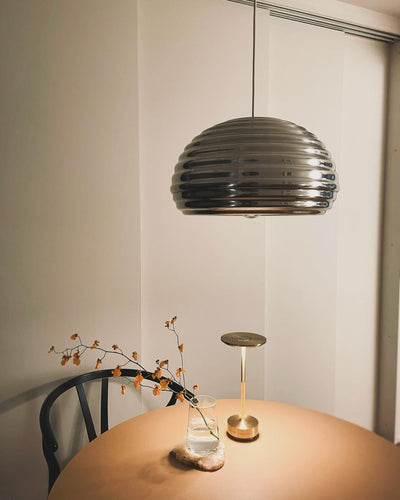 This pendant light changes its appearance depending on where it is displayed. It is a masterpiece that was designed in 1961 for a bar in Milan and has won numerous awards. Its wavy shade is unique. The polished aluminum reflects the colors and light of the environment in which it is displayed, further enhancing its unique character as a light. Source: https://www.masterwal.jp/