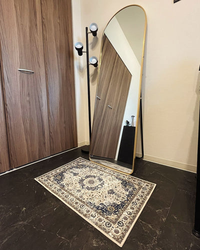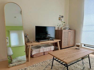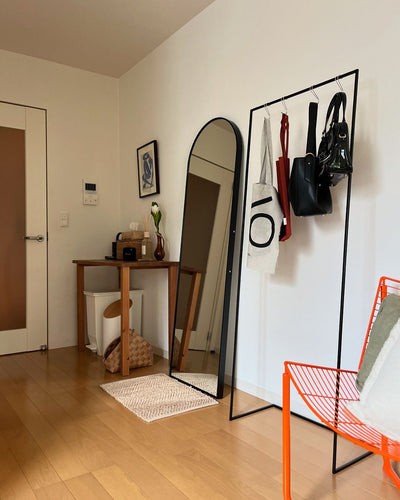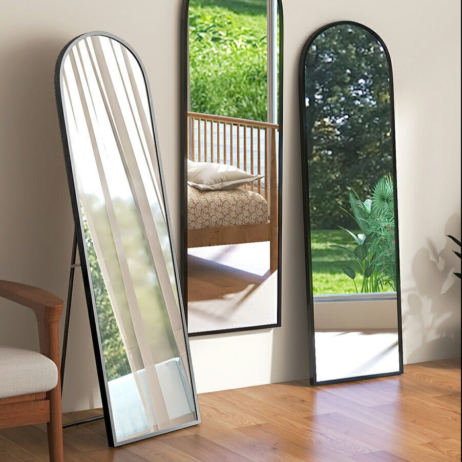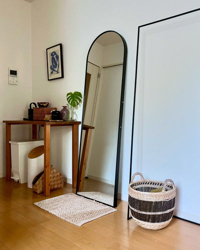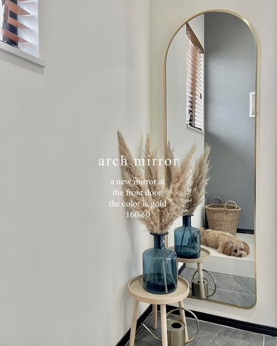 This arched standing mirror gives a soft look to your room without overwhelming it. The mirror is shatterproof. Even if the mirror breaks, it won't shatter into large pieces, so you can rest assured. Source: https://www.rakuten.co.jp/