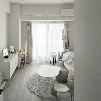 This round shaggy rug is fluffy and pleasant to the touch. The smooth microfiber creates a cozy space. Just add one to your room to brighten up the interior. Source: https://www.modern-deco.jp/