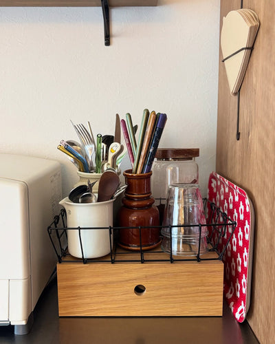 It is a convenient size for organizing your desk. It comes with one divider that allows you to adjust the width of the inside. *You can add dividers. Sold separately: [Parts] Divider for 1-tier MDF small item storage (15062447) Receipt Method Available for pick-up at store or convenience store Payment Method d payment available, deferred payment available, atone next month payment available Source: https://www.muji.com/