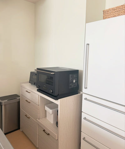 A simple refrigerator with a flat steel door that blends in with your kitchen. The handle is made of a simple round bar. It is shorter than the 355L model, making it ideal for small kitchens with a small number of people. You can also place an oven range on the top. It comes with an automatic ice maker, which is convenient. Source: https://www.muji.com/