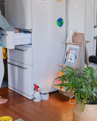 A simple refrigerator with a flat steel door that blends in with your kitchen. The handle is made of a simple round bar. It is shorter than the 355L model, making it ideal for small kitchens with a small number of people. You can also place an oven range on the top. It comes with an automatic ice maker, which is convenient. Source: https://www.muji.com/