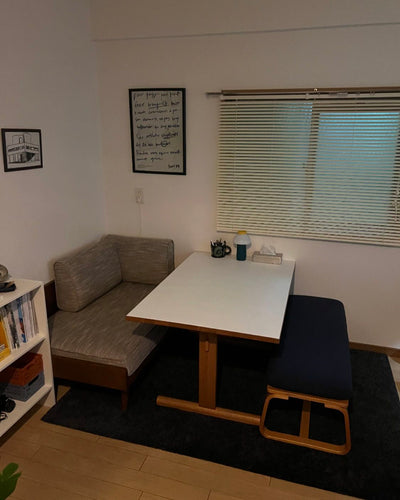This bench was created based on the concept of being comfortable in a compact space. Its height makes it suitable for use in both the living room where you can relax and the dining room where you can enjoy meals. Its size makes it easy to use even in a compact space. Source: https://www.muji.com