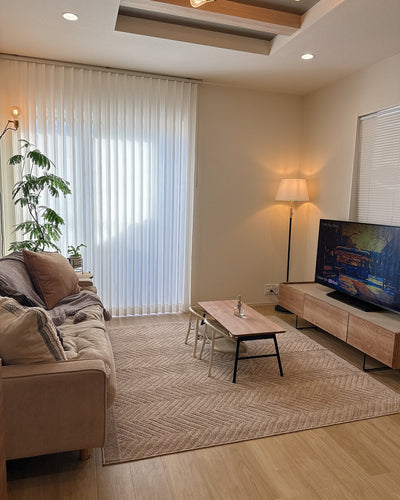 This lowboard has a simple and clean design that will blend in with any layout. The drawers use full-open slide rails that are easy to open and close and can be pulled all the way out. The flap doors have a wood grain sheet affixed to the glass, which gives them a wood grain look and hides the contents, giving them a clean look. Source: https://www.nitori-net.jp/
