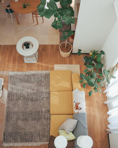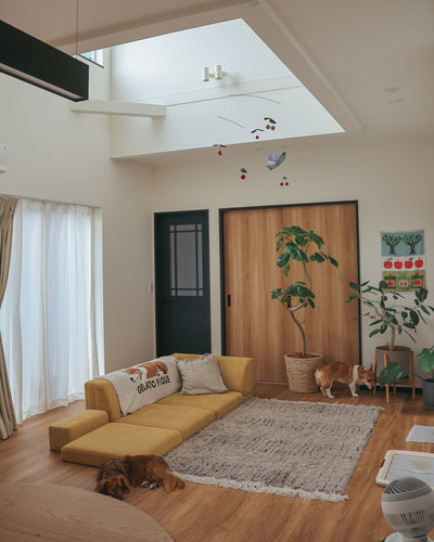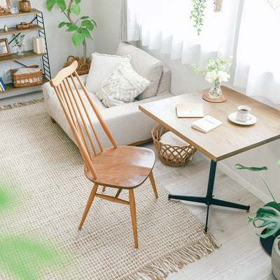 This rug has a hand-drawn pattern created using Wilton weaving. The lines are gently drawn, rather than straight, creating a relaxing design. Source: https://www.rakuten.co.jp/