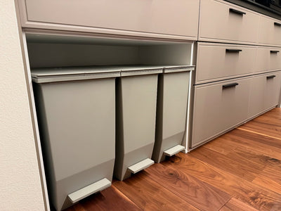 A compact pedal dustbin that can be placed under a shelf or counter for disposal. It is pedal-operated, so you can throw away trash without touching the trash can, making it very hygienic. The lid can be opened by hand and can be kept open. Double antibacterial and stain-resistant processing makes it resistant to bacteria and stains. SIAA・ISO22196 (The SIAA mark is displayed on products that have been evaluated using the ISO22196 method and that have undergone quality control and information disclosure in accordance with the guidelines of the Association of Antibacterial Product Technology.) The lid opens like a double door on either side, making it convenient to use under low shelves or around the kitchen. It has mini casters on the back, making it very convenient for pulling it out or moving it around a little. Comes with a bag stopper that can hold the garbage bag securely. The bag stopper can be moved forward and backward, making it easy to remove and attach the garbage bag.