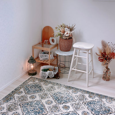 This is a luxurious Persian design rug. It is a Belgian moquette carpet with a silk-like luster and texture. Its European-style color scheme and high design quality are its charms. Source: https://www.amazon.co.jp/
