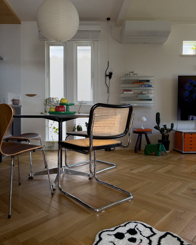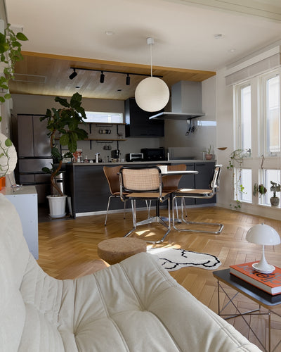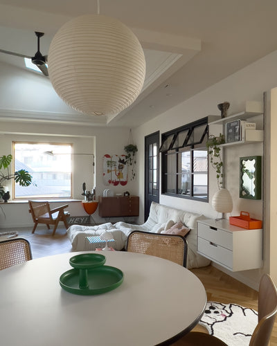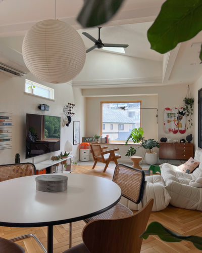 This is a soft and calming light that uses washi paper for the shade. It blends naturally into both Japanese and Western spaces. It is the easiest to handle of the sculptor Isamu Noguchi's AKARI series, and it comes in a wide variety of sizes. Source: https://www.sempre.jp/