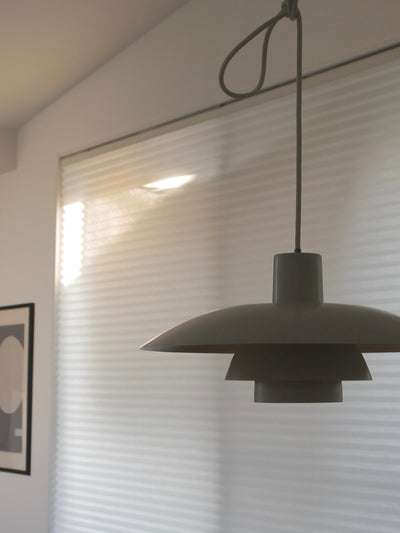 This metal version of the classic PH lamp features a logarithmic spiral design on the curves of its three shades. Its functional design, which focuses a generous amount of soft light downward, has been a best-seller since its introduction in 1966. Between 1925 and 1926, Poul Henningsen developed lighting fixtures with a three-shade system. Henningsen's first multi-shade lamp was designed in collaboration with Louis Poulsen for an exhibition in Paris. The partnership continued until Henningsen's death in 1967. Glare-free light, directing light where it's needed most, while simultaneously creating soft shadows—these were key themes Henningsen pursued throughout his life, and the light source used was the incandescent bulb of the time. The metal-shaded PH 4/3 pendant lamp was released in 1966. Its design retains the standard three-shade system based on a logarithmic spiral, with the light source centered at the center of the spiral. This lamp is a simplified version of a model designed by Henningsen in 1929. The first model was exhibited at the Barcelona Universal Exhibition, where it won the highest honor, and has since been produced in a variety of colors and styles. Source: https://www.sempre.jp/