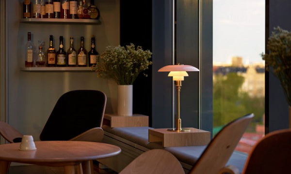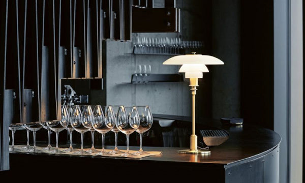 This table lamp was released in 1927. It combines three shades in the shape of a logarithmic spiral. Placing the bulb filament at the starting point of the spiral eliminates dazzling glare, while the shades efficiently reflect light to brighten the table, creating a functional design. It fits into any interior style. Source: https://www.sempre.jp/