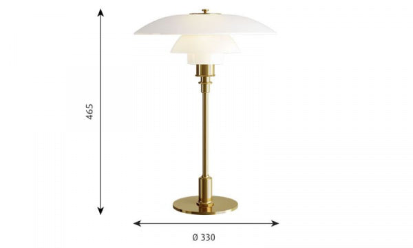 This table lamp is a reproduction of Henningsen's original 1928 design. The three-shade PH lamp is a landmark in lighting design history and makes a stately statement in any interior style. The shade is made of handcrafted milky white mouth-blown glass. The brass base and support are available in silver chrome plated or black metallized. The meticulous detailing is a testament to the craftsmanship. 100% glare-free lighting creates a beautiful interior. Source: https://www.sempre.jp/