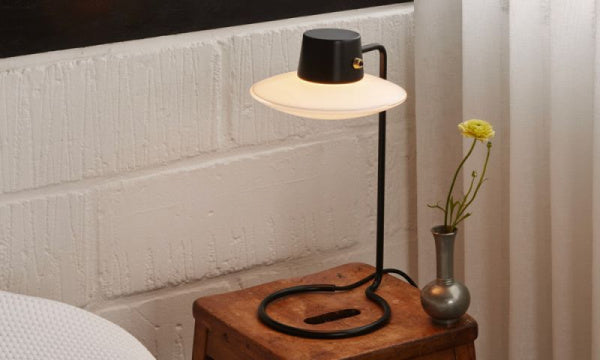 This table lamp was made for St. Catherine's College, one of the 38 colleges that make up Oxford University, designed by Arne Jacobsen in 1963. It features a slim stem design, with the stem seamlessly integrated into the circular base. [Designed in 1963] Source: https://www.sempre.jp/