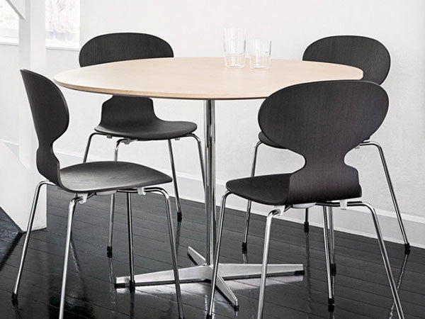 The Ant Chair is a Fritz Hansen masterpiece. Its minimalist form and slender shape make it extremely comfortable. While Arne Jacobsen originally designed the Ant Chair with three legs, the new version features four legs for added stability. It's available in two seat heights. Arne Jacobsen originally designed the Ant Chair for the employee cafeteria of Novo Nordisk, a Danish international pharmaceutical company. While its forward-thinking design initially met with skepticism, Arne Jacobsen himself promised to buy back any unsold chairs, allowing production to continue. However, its minimalist, slender form has more than proven itself, selling millions and earning it the status of a classic. The Ant Chair's shell is made of molded plywood, combining nine layers of veneer and Indian cotton. It's available in natural wood, lacquer (a finish that hides the grain), and colored ash (a finish that reveals the unique grain of each chair). - Natural wood: The exterior of the plywood is finished with a natural wood veneer and a clear lacquer. The distinct grain enhances the chair's organic form. The grain pattern varies from piece to piece. If you prefer a natural look, natural wood is recommended. - Lacquer: The lacquer finish hides the grain, creating a uniform, silky soft surface that allows the color to stand out. - Colored ash: With colored ash, the grain is clearly visible through the color. Unlike a lacquer finish, the chair has an organic feel and the texture of the material is visible. It has the advantage of being a more durable finish than natural wood. Source: https://www.sempre.jp/