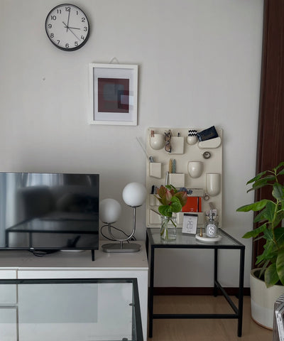 This versatile wall-mounted storage solution helps organize a wide range of spaces, including kitchens, dens, bathrooms, children's rooms, and offices. German designer Dorothee Becker designed the "Uten Shiro 1" in 1969 and the smaller "Uten Shiro 2" a year later. Wall-mounted, it organizes cluttered spaces like the home or office, keeping them neat and tidy. Metal hooks and various pockets make it easy to find and beautifully store everyday items. The storage space changes its appearance depending on the items stored inside, transforming it into a decorative wall piece. Source: https://www.sempre.jp/